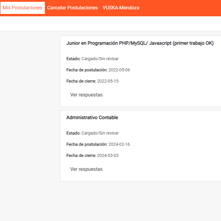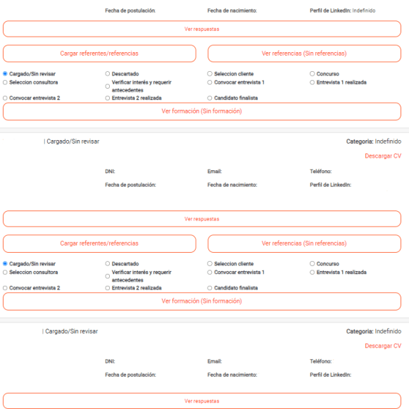 Servicio de almacenamiento de perfiles de postulantes voluntarios registrados en un vínculo privado de "Dejá tu CV"